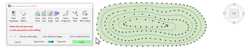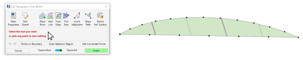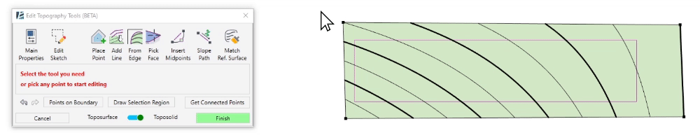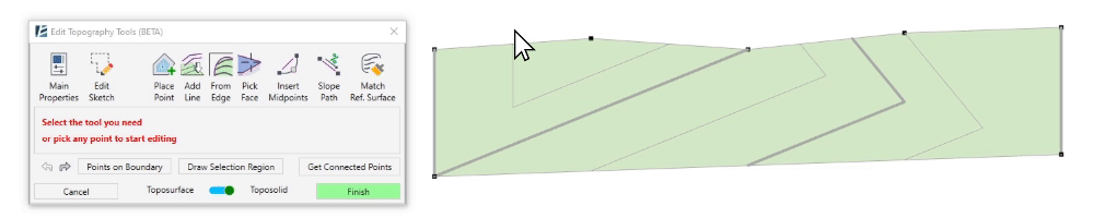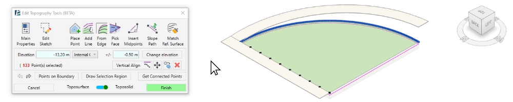 - You can select the slabs and Toposurfaces before or after starting the command.
