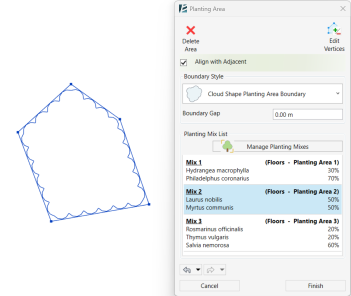 - Click Finish to complete your selection or Cancel to exit the command without changes.