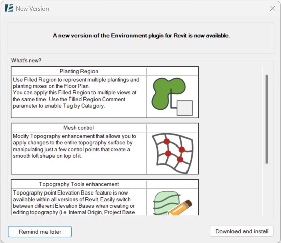 If this box is checked, in the case of a new available patch, Environment will open the following window once you close Revit: