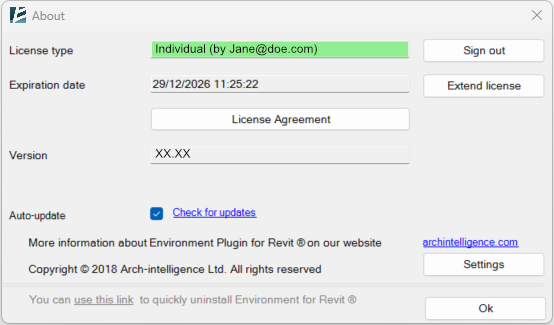 Manage your account and keep Environment for Revit® up to date